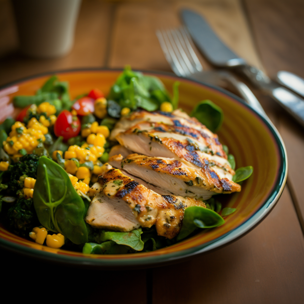- Lunch: Grilled chicken breast, mixed greens salad with avocado and balsamic vinegar.